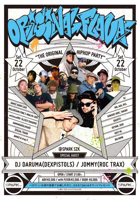 ´ÉÍý¿ÍÍÍ¡¡¹ðÃμºÎ餤¤¿¤·¤Þ¤¹¡£ ¡ÖORIGINAL FLAVA¡× ¤È¤ÏHIPHOP¤Î4ÂçÍ×ÁǤǤ¢¤ë¡¢DJ¡¢DANCE¡¢MC¡¢GRAFFITI¡¢¤¬½¸·ë¤¹¤ë¥Ñ¡¼¥Æ¥£¡¼¡ª º£²ó¤ÏDANCE¤ò¥Õ¥å¡¼¥Á¥ã¡¼¡ª ¥²¥¹¥ÈDJ¤Ë¤Ï¡¢DEXPISTOLS¤È¤·¤Æ³èÌö¤¹¤ë"DJ DARUMA"¡¢¤½¤·¤ÆÆ±¤¸ROC TRAX¤«¤é¿Íµ¤µÞ¾å¾ºÃæ¤Î"JOMMY"¡ª ¸½ºßELECTRO¥·¡¼¥ó¤ÇÂç³èÌöÃæ¤À¤¬¡¢¸µ¡¹¥À¥ó¥¹³¦¤Î¥Ë¥å¡¼¥¹¥¯¡¼¥ëÀ¤Âå¤Ë£±Âç¥à¡¼¥Ö¥á¥ó¥È¤ò´¬¤µ¯¤³¤·¤¿¤¢¤Î¡ØDIGITAL JUNKEEZ¡Ù¤Î¥á¥ó¥Ð¡¼¤Ç¤¢¤ë£²¿Í¤¬¡¢¤³¤ÎÆüHIPHOP¥¯¥é¥Ö¥·¡¼¥ó¤ËÉñ¤¤Ìá¤ë¡£ ¤½¤ì¤Ë¹ç¤ï¤»¤ÆDANCE SHOW CASE¤Ë¤Ï¡Øentrance¡Ùtakaomi¤Î¸Æ¤Ó¤«¤±¤Ë¥¹¥Ú¥·