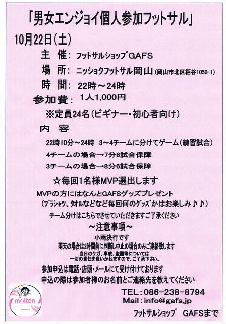 まだまだ参加者募集しております 当日まで受け付けております Mail:info@gafs.jp TEL:086-238-8794
