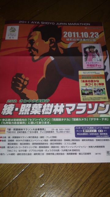 ワンハートメンバーのみなさん、お久しぶり〜 お元気〜 さてさて、今年もやって参りましたこの季節 そう綾マラソン 懲りずにまたみんなで走ろうと思ってトピ立てちゃいます なんと、なんと今年はゲストランナーに平尾紀子さんが来てくれるそうでーす 今年の参加賞がTシャツからランドリーバックに変わって綾町も気合い十分 あっ、トミーの好きなランドリーではないみたい あとはお馴染みの参加賞♪ 今年は抽選会までゆっくりしようかな? お弁当と橋巻き食べながら 天