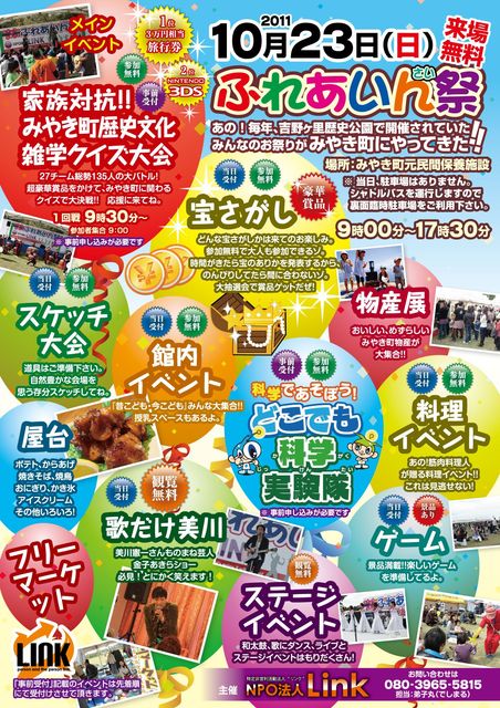ありそうでなかったので、失礼します。 第5回になる「ふれあいん祭」に、3年ぶりにフリマ出展しますexclamation ×2 会場は、わたしたちのみやき町で初開催。 ご来場の皆さま、同じくもてなす方の皆さま、よろしくお願い申し上げます。 主催/NPO法人LINKさんのオフィシャルFACEBOOKです。 http://www.facebook.com/photo.php?fbid=227756140617656&set=a.177017375691533.44735.176074942452443&type=3&theater タイ式癒し処パームからの出展予定はこちら☆彡 http://palm.sagafan.jp/e431969.html