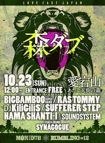 -森ダブ- RUMBLING12 (出演者) ☆BIGBAMBOO fromSUPER DANK ☆DJ KiliGilis ☆RAS TOMMY ☆SUFFERER STEP ☆HAMA SHANTI-I with Sound systm ☆FULLBOOST Sound System ☆food&drink ☆場所   SYNAGOGE  愛宕山 DAY/10月23日SUN START 12:00pm〜 ENTRANCE FREE 飲食物持ち込みはご遠慮下さい 山なので冷え込むかも 防寒具をお忘れなく みんなの広場ですマナーを守りましょう そして楽しみましょう dub roots newroots ska reggae..........