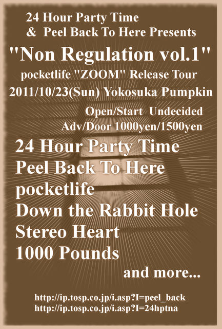 24 Hour Party Time & Peel Back To Here Presents "Non Regulation Vol.1" pocketlife "ZOOM"RELEASE TOUR「コラーゲンツアー」、24pt,PBTHレコ発