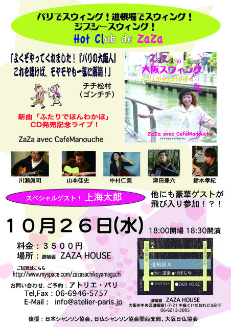 10月26日(水)「Hot Club de ZaZa」CD発売記念ライブ!