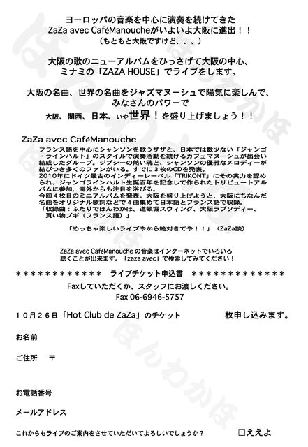 ZaZa avec CafeManoucheがいよいよ大阪に進出!!(もともと大阪ですけど、、、)