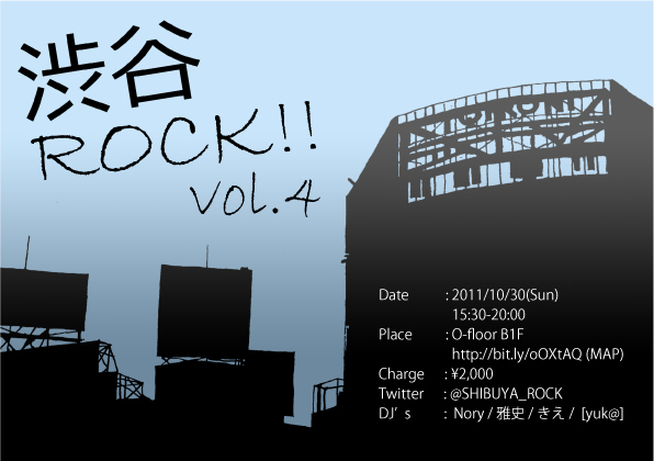 参加表明はこちらでも大丈夫ですが、できるだけ、 http://mixi.jp/view_event.pl?id=65392768 でして頂いた方が、イベント後のマイミク申請などが便利です! ----- 渋谷を活動拠点にする、毎月開催という無茶な試みのDJイベント渋谷ROCK!!もいよいよ4回目☆ 今回はハロウィン前日開催でございます! (`・ω・´) 2次会もやるので、みんなでともだちを増やしましょう! ●10月30日(日曜) 15:30-20:00 ●場所:渋谷O-FLOOR B1F (HotPepperのお店のページ※地図アリ) http://www.hotpepper.jp/strJ000760957/map/ ●CHARGE: