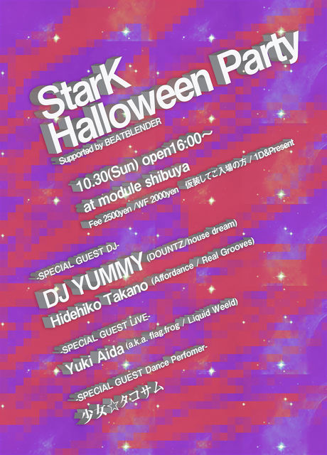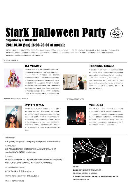 前回1周年を迎えたStarK!今回はDJ YUMMY、Hidehiko TakanoをゲストDJに迎え、LIVEにmurmur recordsnoのオーナーYuki Aida。踊れる音から深く、堅い音まで
