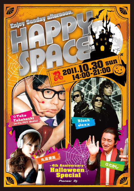 告知失礼いたします◎ 今までのクラブのイメージを変える新しいクラブイベントを ☆ 【HAPPY SPACE】-4th anniversary- halloween special デイタイムの渋谷で開催。しかも4周年&ハロウィンパーティー ☆ m-floのDJ☆Taku Takahashiさんや、俳優の武田真治さんがSAXをプレイするBlackJaxx他、豪華ゲスト登場、楽しさ保証付きの内容です ☆ しかも、メッセージして頂ければご優待予約価格2000円にてご入場頂けます☆ ヘアブース、ネイルブース、マッサージブース、フード、託児施設もございます☆ 普段クラブに行かな