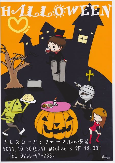 「ハッピーハロウィン」 今年もハロウィンがやって来ます とってもお洒落なお店を貸し切りました みんなで仮装してワイワイ楽しもう 仮装コンテストもあるよ 仮装の準備は意外と時間のかかる物・・。 早めに申し込みして、当日は素敵に変身しちゃおう イベントに初めて参加される方大歓迎 すぐに馴染める雰囲気がここにはあるのだ 友達との参加もオッケーだよ mixiチェックでみんなに教えてあげてね http://goo.gl/du0FQ 日時 10