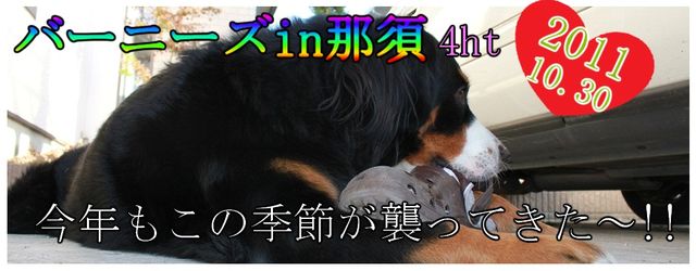 黒い群衆の眉毛ビッグウェーブ♪ *みんな集まれバーニーズマウンテンドッグ*(おかげさまで4年目v) ★2011年10月30日(日)★ ■AM10:00〜PM02:00貸切 ■場所:ドッグラン「のまでぃっく」 〒325-0114 栃木県那須塩原市戸田693-1 (県道369号線(板室街道)「戸田小学校」裏300メートル) http://www.k4.dion.ne.jp/~nomadic/index.htm Tel:050-3050-4342 ■備考:小雨程度なら雨天決行しちゃう。 昼食は持参、またはラン内で軽食がとれます。 ターフ・パラソル・テント・レジャー