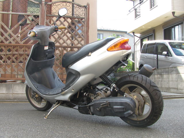 ・メーカー名: ヤマハ ・車名:グランドアクシス ・年式:不明(初期型) ・車体番号:SB01J ・2st/4st:2st ・排気量:100cc ・色:シルバー ・自走: 可能 ・走行距離:11000kmちょっと ・車検/自賠責の有無:なし ・事故歴:当方ではなし。普通に走れます。 ・キズや不具合の有無: 走行距離なりの傷あり ライト部分のカウル割れあり フロントカウル割れていたので、補修して同系色で塗装 キックアームが開きすぎて蹴り辛いです ・カスタム箇所や装備: ハリケーン製150mmロンスイ フロントクリアウ