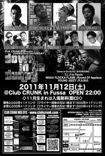 毎月第二週目、福生Club CRUNKの土曜日は"DOWN IN DA DURTY"