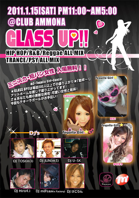1月15日の土曜日ですよー女性はミニスカor短パンで入場無料GLASS UP!!は毎回300人以上での盛り上がりGLASS UPが何故いつも盛り上がるのか?