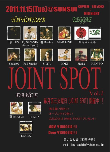 11月15日(Tue)@SUNSUI OPEN 18:00 close MID NIGHT