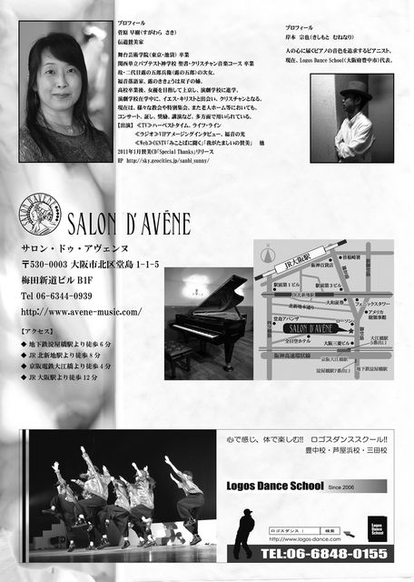 Open 7:00pm 1st set 8:00pm〜 2nd set 9:00pm〜 ¥3,500.-(オードブル、1ドリンク付き) 場所、その他詳しい事はこちらで http://www.avene-music.com/ 夜遅いですし、チャージもそれなりですが、ぜひたくさんの方にお越しいただけますように。 来られない方も、お祈りで応援、お願いします!