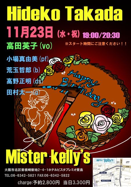 こんにちは。 いいお天気の日曜日ですね。お元気ですか? 明日は誕生日。ひとつ歳が多くなります。しかし、もう、すごい数字になってきました。 で、いい歳なってから始めたバースデイライブも、毎年のイベントになってきて、今年は堂島ミスターケリーズで、11月23日(水・祝)夜 7時から開催です!! メンバーは、この方たちと!! もう、私たちの愛とハグのあったかさがステージから飛んでいきますよ!! 今年の集大成的ライブです。そして田村太一さんは私と同じ11月21日の誕生日なの。 とっても偶然なんですよ。 この日はアレンジも、ド