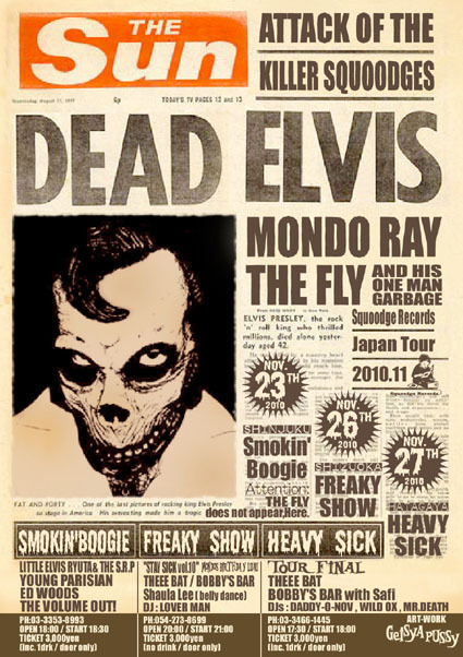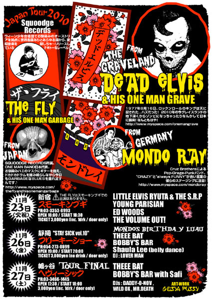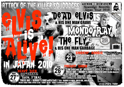 つっ!遂にSQUOODGE RECORDSからDEAD ELVIS & HIS ONE MAN GRAVE と MONDO RAYが来日!