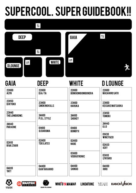 ARENAには日本トップのVJ陣が勢揃いし、視界を覆う11面スクリーンで、TECHNOをテーマにガチンコVJセッションorバトル!? DJはQ'HEY、MAYURI他、BOXにはDE DE MOUSEも登場!!各フロアーには『REPUBLIC』『OUT OF DOTS mobile』『PREV!EW』と3つのVJパーティーがageHa初登場! VJシーンをとりまく人々の熱い想いが結集し創り上げる、実験と遊びの場、光と夢のステージ。それが、POWER of VISUAL。