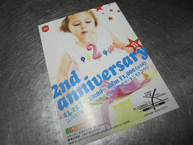 来週金曜日, LIVE&DJイベント開催しま〜す 祝二周年Performance People Party 11/25(金) 20:00スタート 1ドリンク付 1000円 LIVE★ 喜一 DJ ★ サイガ / マコ / トモヤ / タニモトコウジ
