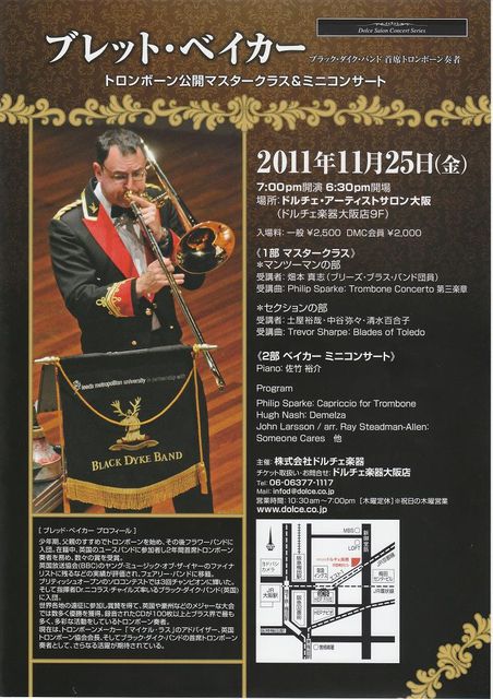 【Black Dyke Band】の首席トロンボーン奏者のBRETT BAKER氏の公開レッスンとミニコンサートが開催されます。 ブラスバンドのトロンボーン奏者の方は必聴でしょう 場所:ドルチェ楽器大阪店9階:ドルチェ・アーティストサロン大阪 時間:18:30開場 19:00開演 入場料:2,500円 【第1部マスタークラス】 マンツーマンの部 セクションの部 【第2部ミニコンサート】