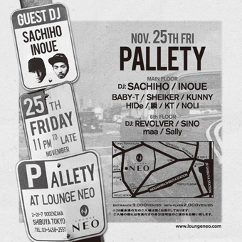 11月25日、金曜日! LOUNGE NEO (VUENOS 5F)の看板パーティー、PALLETY! 今回もDJ SACHIHO, INOUEを筆頭に最高の雰囲気をお届けできること間違いなし☆ ディスカウントのご案内です♪ 通常3000円かかってしまうところ、 NEOのエントランスで、 『シュンのゲストでナガノ』 と言えば特別ディスカウント!!! 女性1000/1D 男性1000/ND でご入場頂けます★ 個別のゲストもお取りできますのでお気軽にメッセージどうぞ♪ 以下詳細です! THE BEST OF TOKYO REGULAR DANCE PARTY!! 時代とともに変わ