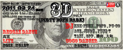 11月最後の土曜日 柏@MIRRORのイベントは当店STAFF JINOHオーガナイズによるパーティー 3Dが開催です。濃い一晩になること間違いなしです。 是非遊びに来て下さい。 Dirty Dope Dark『3D』Vol,4 11/26(sat)柏@Club MIRROR Open 22:00 Close 5:00 ▼Entrance Men 2000/1D Woman 1500/1D ※当日フライヤーを持参の方1D+になります。 ※誕生月の方に限り身分証提示にて入場無料‼(ドリチケは付きません) ■注意 ゲスト+フライヤー両方のご利用はできません ▼DJ’z OPP JINOH SHOW 勝利 PU-CO KS
