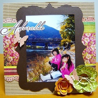 スクラップブッキング体験講習 日時:2011年 11月28日 月曜日 午前10時から12時 場所:吹田市千里丘下 山二公民館 会議室 募集定員:12名 秋の旅行写真にぴったりの15cm×15cmの写真立てです 和室にもぴったりの落ち着いたデザインですので、 おじいちゃん、おばあちゃんへのプレゼントにも最適です キットをご用意させていただいていますので、 初めての方でも簡単に作れる内容です おひとり 700円 (材料費、講師料含む) 持ち物