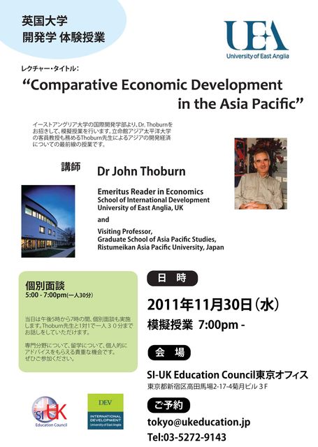 イースト・アングリア大学の開発学教授、Dr. John ThoburnがSI-UKにて開発学の体験授業を行います。