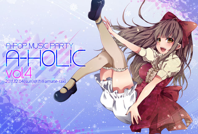 ■■■A-HOL!C 〜vol.4〜■■■ 暦の上では寒さに震える冬なわけですが……アニソンクラブイベントの現場はまだまだアツい!! 気鋭のDJ達が主催する一大イベント――その第4回が来るべき12月4日に開催決定!! 4度目を迎えたこのバカ騒ぎを体験せずに、クリスマスや年越しなんて勿体無い!! 季節に1度、開催されている中毒者達のお祭り騒ぎ。 前回開催では200人近くを動員したことも記憶に新しい「A-HOL!C」…… (ご来場下さった皆様、本当にありがとうございました!!!) 今回も、前回に引けを取らない要注目・超豪華なゲスト陣がこ