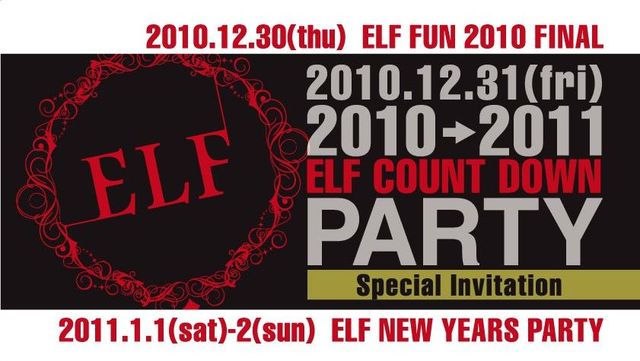 ELFとあのArmani Exchangeがコラボしたカウントダウンを開催 来場者先着100名様にはA|Xより特別にプレゼントをご用意しています 添付のスペシャルインビテーションを、エントランスで提示いただければ、Special料金で入場いただけます画像保存は確実に DJ TENとDJ ASAのレジデントDJに加えて、様々な人気DJ陣が、カウントダウンを盛り上げます 勿論、2011年に変わる瞬間は、VJと特効で、最高潮に 振る舞い酒もご用意しております 大盛り上がりで2011年を迎えましょう 23:00〜は混雑が予想さ