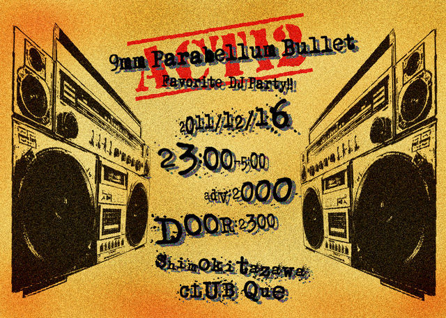 管理人様、告知失礼致しますm(_ _)m そして、9mm Parabellum Bulletコミュの皆様、いつもお世話になっております。 今回もよろしくお願いしますm(_ _)m ご予約はこのトピックとメール予約にて行います。 方法は下記の告知文に載せてあります。 本文を最後までよくお読みの上(特にクローク説明&予約方法&注意事項。)、ご予約をよろしくお願いしますm(__)m ------------------------------------------------------------------------------------- 【act 12】 元祖、9mm Parabellum Bulle