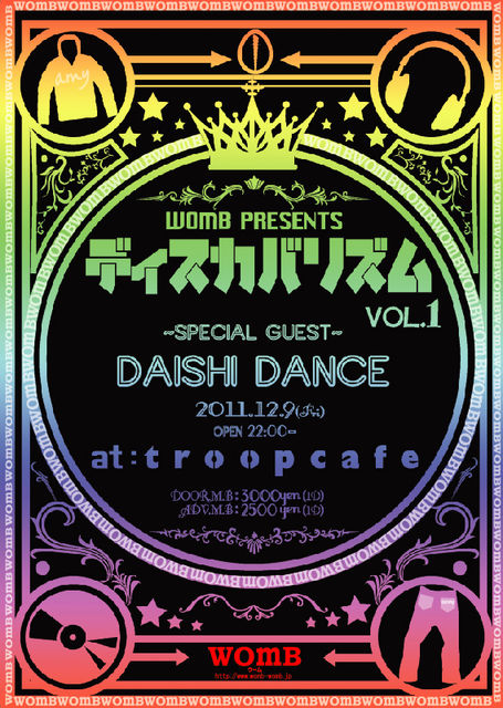 WOmB presents ディスカバリズム vol.1 feat.DAISHI DANCE @Troop Cafe DATE: 12月09日(金) [NIGHT] TIME: 22:00 ~ LATE PRICE: Door M.B 3000(1D) 1:00までで、それ以降はBAR営業? http://troopcafe.iflyer.jp/venue/flyer/94732 http://womb-womb.jp/event/womb%E3%83%97%E3%83%AC%E3%82%BC%E3%83%B3%E3%83%84%E3%80%80%E3%83%87%E3%82%A3%E3%82%B9%E3%82%AB%E3%83%90%E3%83%AA%E3%82%BA%E3%83%A0vol1%E9%96%8B%E5%82%AC%E6%B1%BA%E5%AE%9A/ 神戸ルミナリエ開催中です。 18:00〜22:00 http://www.