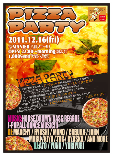 金沢市片町マニールで2ヶ月に一度開催されるPIZZA PARTY!