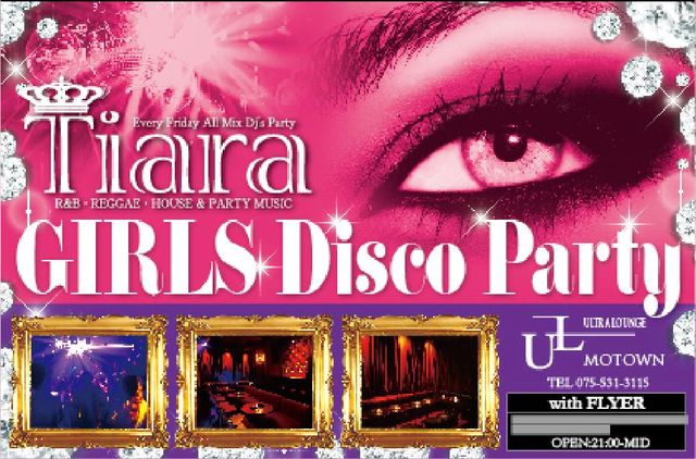 管理人様貴重なスペースありがとうございます。 不適切であればご削除下さいませ 毎週金曜日 京都オールジャンル 場所Ultra Lounge イベント名Tiara=ティアラ= 日時21時半〜4時 京都初DVJプレイ 映像と音楽をリンクさせたDVJプレイが毎週金曜日オールジャンルパーティ―『TIARA』でスタート LADY GAGA・MAY-JからMichaelJacksonまでプロモ