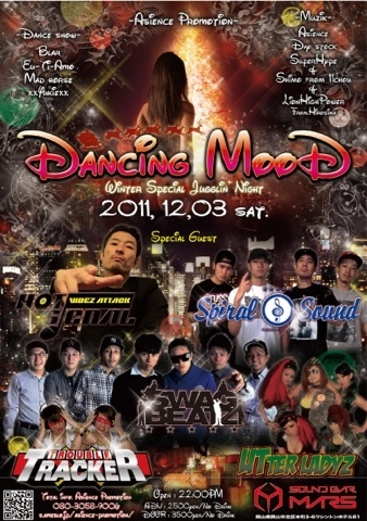 貴重なスペースをお借りします! 夏が終わって最近涼しく、 とても過ごしやすいですねー! そしてもうすぐ冬がやってきます 夏も楽しみは沢山ありますが、 もちろん冬にもいいところが 沢山あるわけでございます! ASIENCEは一年通して PARTYやっとりますんで! 寒い季節もばっちりいい音で、 踊って楽しみましょう! ほんでもって改めまして前回の Dancing Moodに集まってくれた Sound、そしてお客さん、 ありがとうございました! 次回のDancing Moodは、、、 12/3 (土) でございます! 次回はw