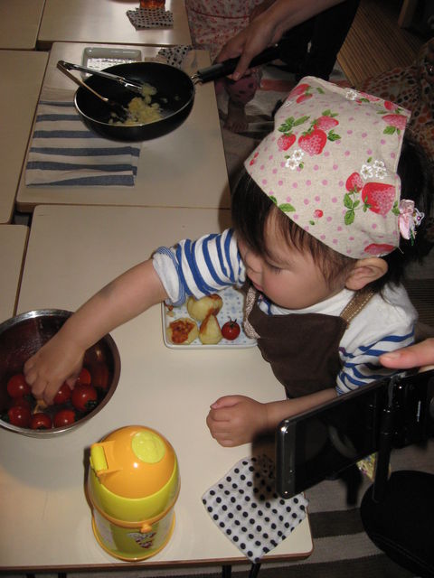 こどもキッチンfirst(12月期)募集のご案内です このコース(対象年齢1歳半〜3歳まで)は ?簡単でおいしいメニューを1つつくる ?試食しながら、お母さん・お父さんのミニワーク ?お家で宿題にとりくむ こんな内容で、全4回(隔週)コースです。 まだ言葉もおぼつかない時期なんだけれど「やりたい!」「できる!」と 小さいこどもたちは本当に意欲満々です。 そして「まだ早いかな〜?」と思われる小さなこどもも環境を整えることから お料理が可能になります。 このコースでは、子どもの手元には何