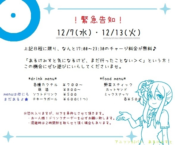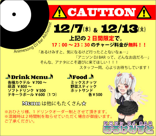 ENTRANCE / 1,500 yen (1Drink) , With Flyer : 1,000 yen (1Drink)