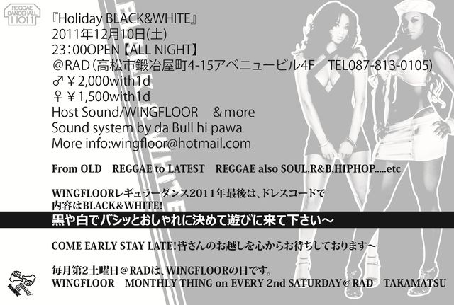 WINGFLOORレギュラーダンス2011年最後は、ドレスコードで内容はBLACK&WHITE!