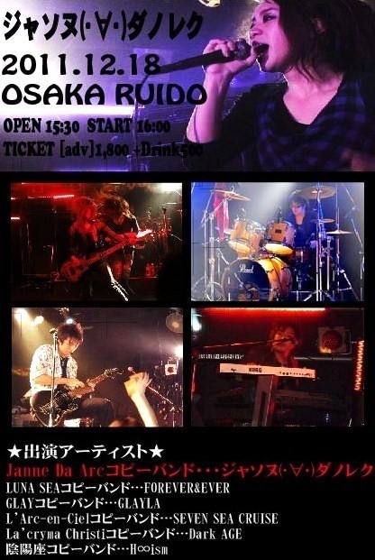 大阪で活動中のJanne Da Arcのコピーバンド「ジャソヌ(・∀・)ダノレク」です。