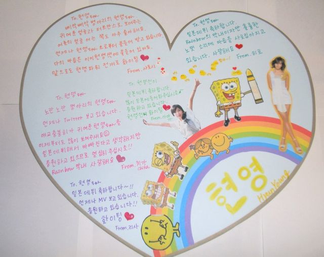 12月19日(月)渋谷公会堂にてRAINBOWのPremiumLIVEに参戦出来ることになったので、前回と同様に各メンバー宛にメッセージ色紙をプレゼントしようと思います。 前回、RAINBOWのデビューイベント(握手会)時にプレゼントしたものと同様になってしまうのですが、ハートの色紙にメッセージを書き、LIVE当日にプレゼントBOXに入れようと思います。 あまり日にちがありませんが、参加して頂けると嬉しいです♪ 【詳細】 LIVE当日に自分で書きたいという方へ。 すみませんが、東京公演のみとなります。 LIVEに参加出来ないけれど、メッセージに参加