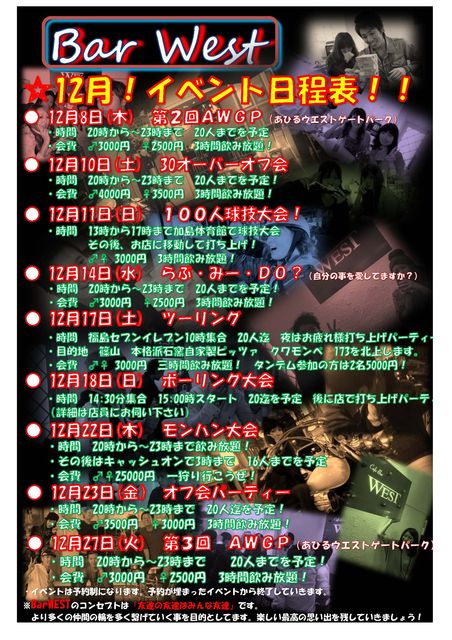 12/22 (THU) OPEN 19:00 - CLOSE 25:00