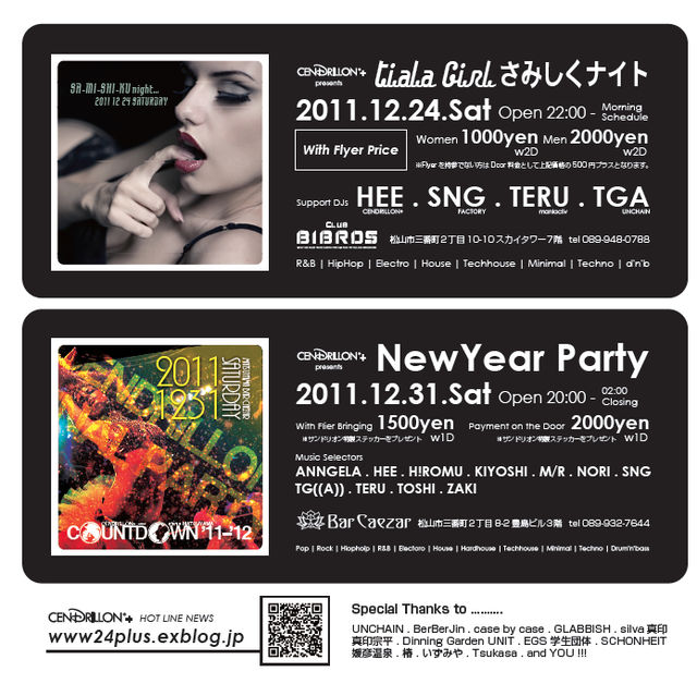 今年のクリスマスは 中止だという噂を 聞いていたのですが… ガセだったようなので 急遽、イベントを企画しました ■12月24日・25日 ■21:00〜3:00 ?チャージ無料!!セット料金500円引き ?飲み放題最大6時間 男性3000円 女性2500円 あと、ここだけの話… 本日24日、女性スタッフが1名出勤します ド派手なパーティーではありませんが 楽しい時間を過ごしましょう