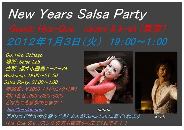もうそろそろ丸四年になるんですが、Salsa Labには毎月2回大阪からサルサインストラクターのまさのりさんに来てもらってワークショップを開催しています。 彼は、全国的にも有名なロスバリエンティスのメンバーでトップチームに属するインストラクターです。これまでもゲストとしていろんなところのサルサパーティに招待されたりしています。 毎年開催しているサンセットビーチのビーチサルサパーティにも来てもらってパフォーマンスもやってもらっています。 そのまさのりさんのワークショップのクローズドクラスの生徒さんたちによる恒例の