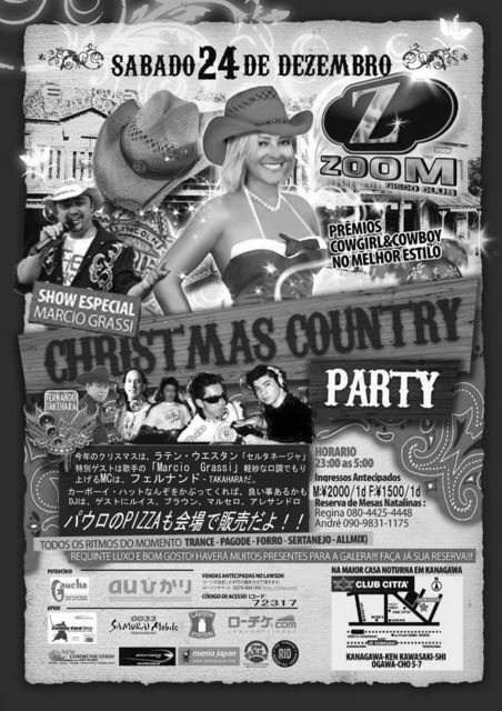 A Zoom disco club!!traz para voce,uma Super Festa!!!Com Show Especial cantor, Marcio Grassi vocalista da Banda Mix Country Que Foi Destaque No Tokyo Brasilian Day 2011,Participacao do locutor mc, Fernando Takehara..e os Djs Luiws,Marcelo,Braun,Alesandro..Agitando Sua Noite de Natal...Com Todos Ritmos,Nacional e Internacional..Requinte Luxo e Bom Gosto!!Haver