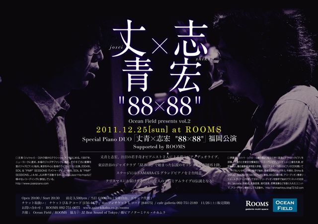 ¡Ú Ocean Field presents vol.2 ³«ºÅ·èÄꡪ¡Û ¾æÀĤȻֹ¨¡¢ÃíÌܤμã¼ê´ñºÍ¥Ô¥¢¥Ë¥¹¥È2¿Í¤Ë¤è¤ëÌ´¤Î¥Ô¥¢¥Î¥Ç¥å¥ª¥é¥¤¥Ö¡£Åìµþ¡¦½Âë¤Î¥¸¥ã¥º¥¯¥é¥Ö ¡ÖJZ Brat¡×¤Ç»Ï¤Þ¤Ã¤¿ÅÁÀâ¤Î¥»¥Ã¥·¥ç¥ó¤¬Ocean Field presents vol.2 ¤È¤·¤ÆÊ¡²¬ºÆ¾åΦ¡£ ¥¹¥Æ¡¼¥¸¤Ë¤Ï YAMAHA-C5 ¥°¥é¥ó¥É¥Ô¥¢¥Î¤ò2ÂæÍѰա£ ¥¯¥ê¥¹¥Þ¥¹¤Î¤ªÆÏ¤±¤¹¤ë¡¢¤³¤ÎÆó¿Í¤Î¥×¥ì¥ß¥¢¥à¥é¥¤¥Ö¤ÏÅÁÀâ¤È¤Ê¤ë¡£ ¡ç¡ç¡ç¡ç¡ç¡ç¡ç¡ç¡ç¡ç¡ç¡ç¡ç¡ç¡ç¡ç¡ç¡ç¡ç¡ç¡ç¡ç¡ç¡ç¡ç¡ç¡ç¡ç¡ç¡ç¡ç¡ç¡ç Ocean Field presents vol..2 Special Piano DUO¡Ö¾æÀġ߻ֹ¨ 88¡ß88¡×Ê¡²¬¸ø±é 2011.12.25[sun]