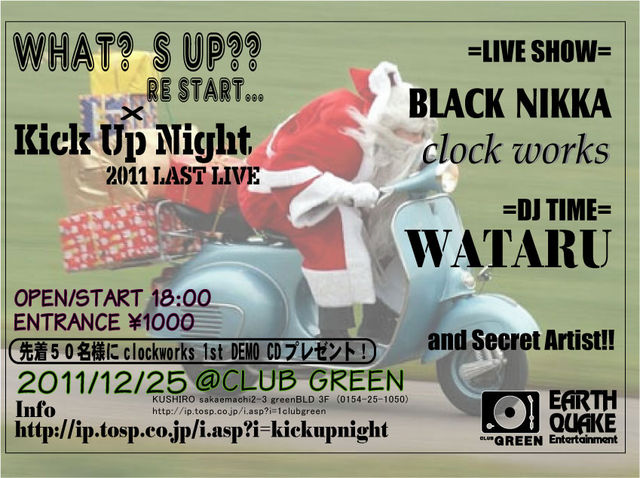 今年最後のKick Up NightはWHAT'S UP??との初コラボです。