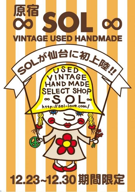 原宿SOLさんの 期間限定SHOP 「モコフワクリスマス展」 PARCO 仙台店に 参加しております 店頭には かわいいものがたっくさん 並んでいますよ ぜひ 足を運んでみてくださいね ●12/23(金・祝)〜30(金) ●1F・エスカレーター横 特設会場 原宿にある古着とハンドメイド雑貨のお店「SOL」が仙台に初上陸! 「世界で一つ」をコンセプトに、40名に及ぶハンドメイド作家の 作品やリメイク商品などが期間限定で並びます。 アメリカより買い付けたヴィンテージ雑貨や、きのこ好きにはたまらないグッズも盛りだくさん♪