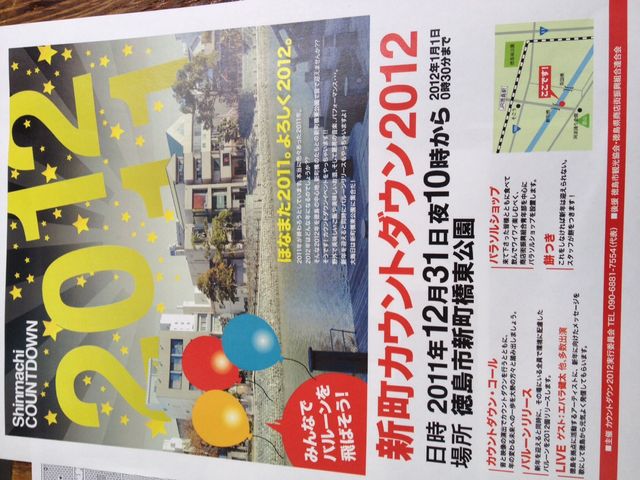 2年ぶりに新町カウントダウンが帰って来た!! 新町カウントダウン2012を開催します。 2011年最後のそして2012年最初のお祝いを新町カウントダウンでしよう!! 屋台やライブ、なんと2012個のバルーンをリリースしますよ〜ん。 みんな来てね!