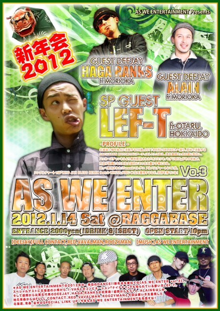 ★AS WE ENTERTAINMENTの2012年の一発目のDANCE!!新年会を兼ねての【AS WE ENTER vol.3】。スペシャルゲストに北海道の小樽から、I-VANとのコンビ