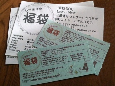 皆様。あけましておめでとうございます(^−^) 1月13日の金曜日(11:00〜14:00) 公園どうりのクラブハウス斜め前にあります 株)エイト さんのモデルハウスにて・・・1day shopを開催いたします!! 今回のひだまりの・・・は 、ひだまりの 福袋!!です☆ 各作家の雑貨販売に加えて・・今回は1月ということで、各作家が福袋を 用意しています!! とってもお得な内容になっておりますので、皆様、是非おこしくださいませ!! 参加作家です↓ furu*furu 布小物・編み物・ヘアアクセサリー sopo 編