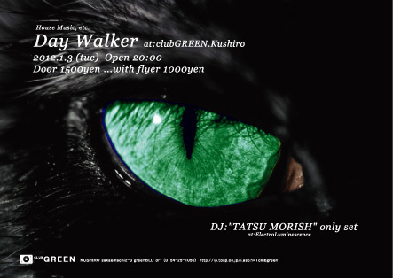 ♪HOUSE/etc. <1/3(tue) OPEN 20:00> 【Day walker】 DJ TATSU MORISH (Electro Luminescence) [Door 1500yen] [W/F 1000yen]